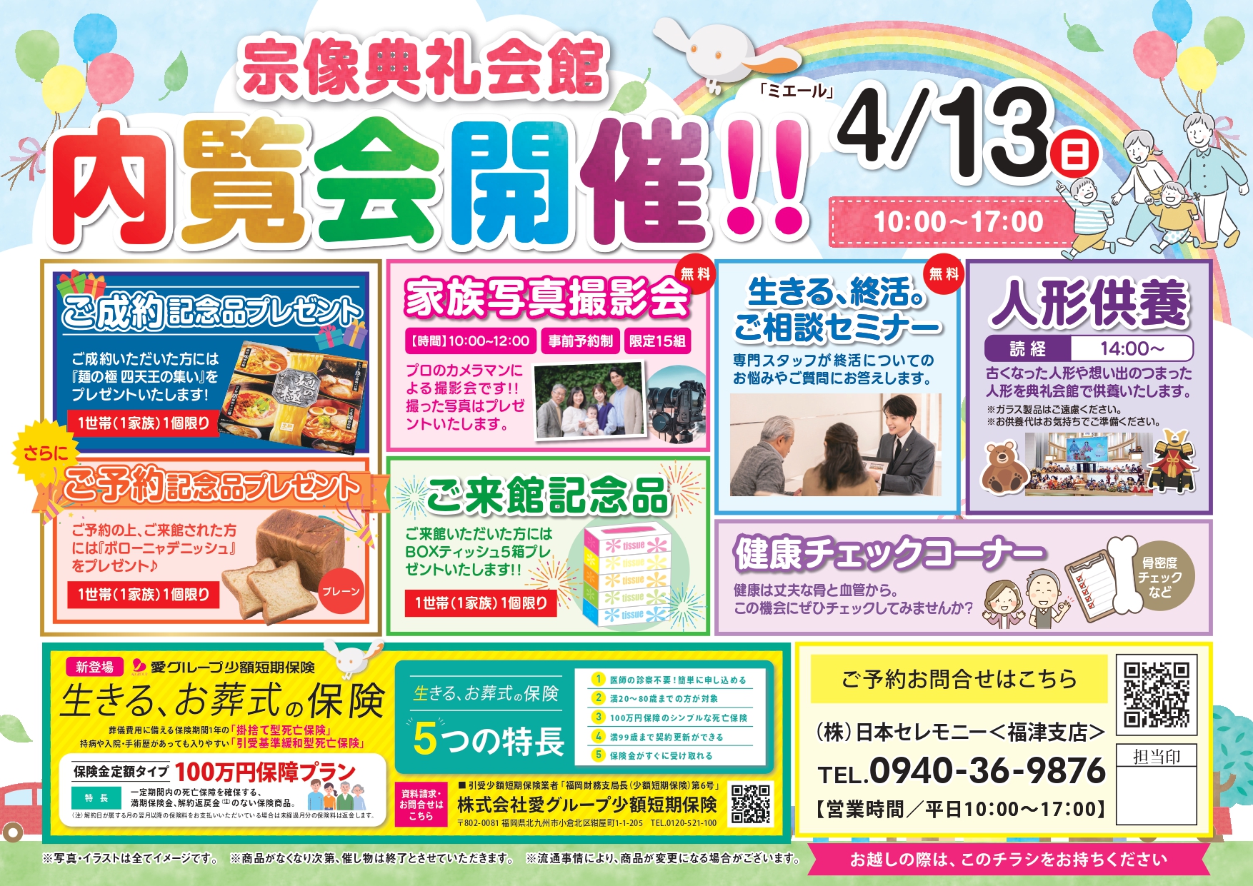 宗像典礼会館(宗像市野坂2720-2 TEL0940-36-4000) にて『内覧会』を開催いたします。