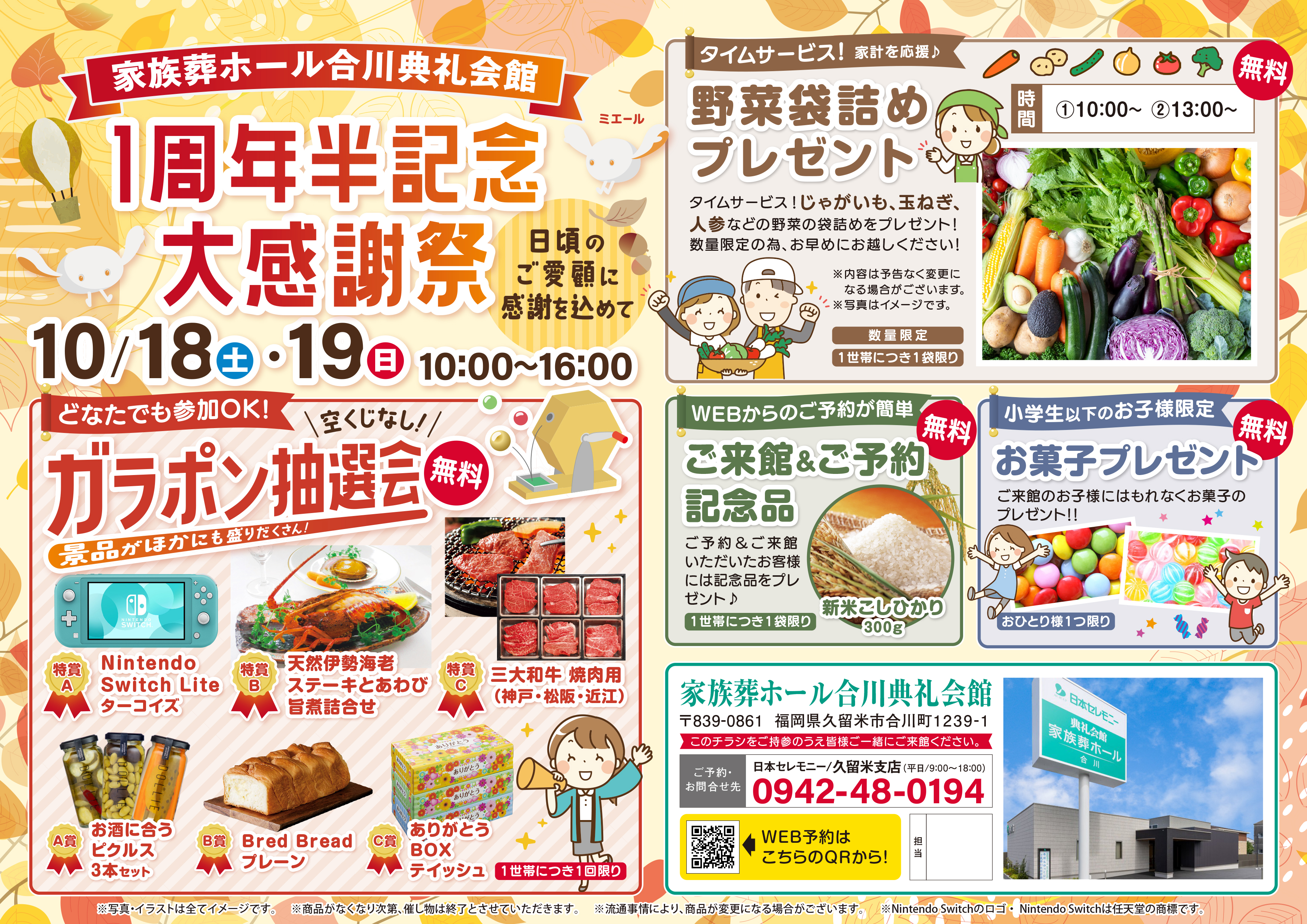 10/18・19 家族葬ホール合川典礼会館 1周年半記念大感謝祭