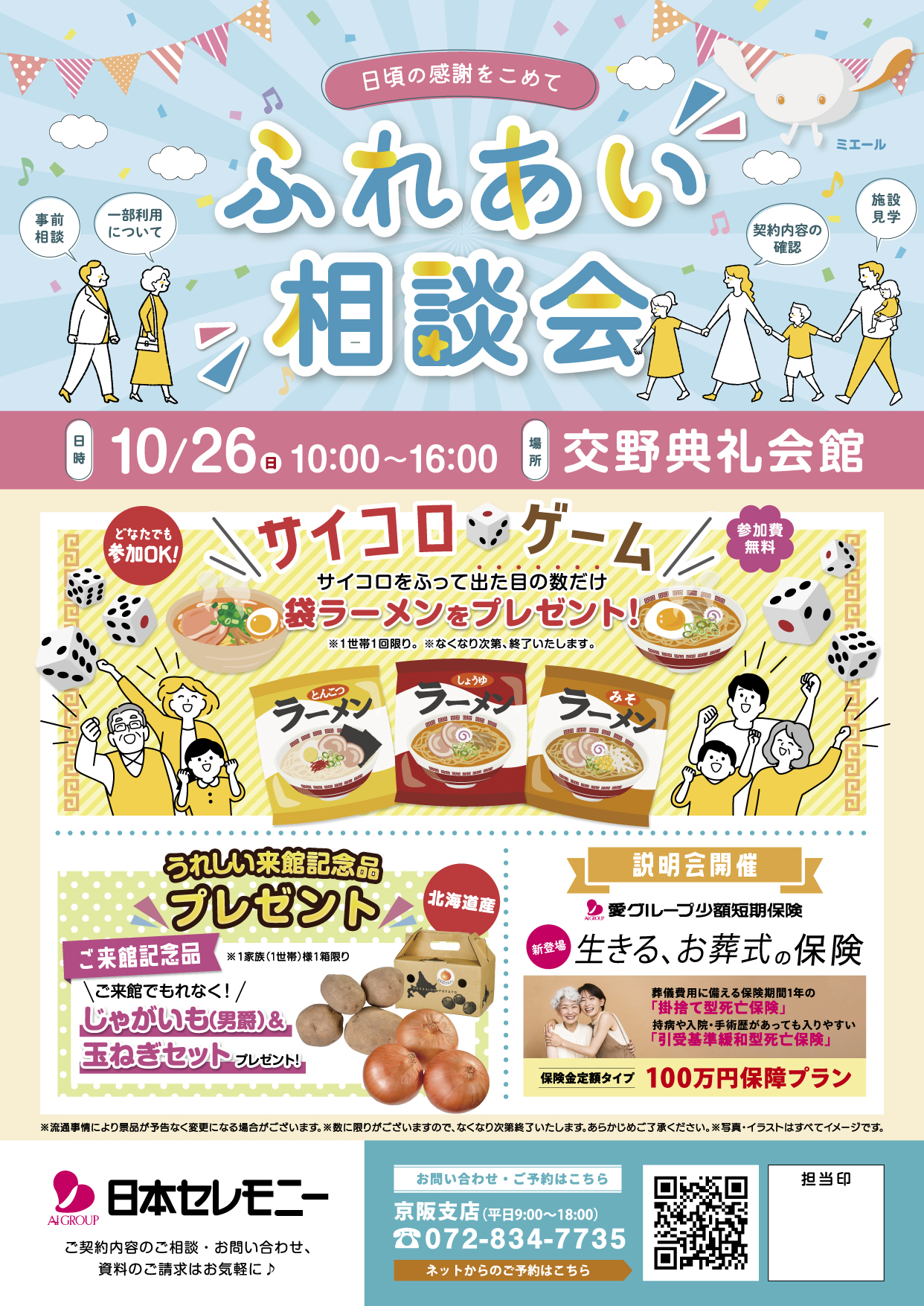 10/26(日)10:00~16:00 交野典礼会館(交野市星田北四丁目31-15 TEL072-892-2779) にて