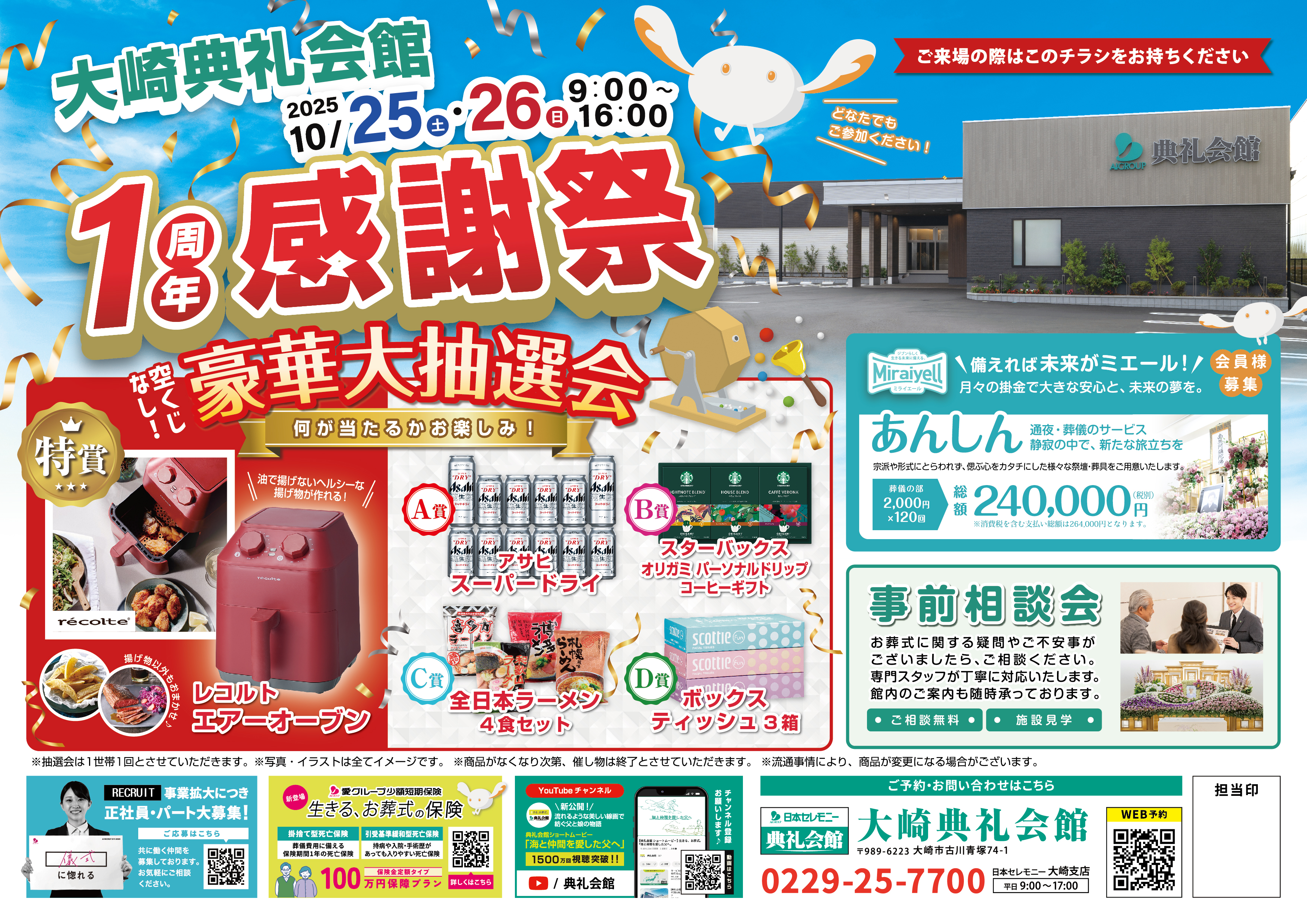 10/25(土)・10/26(日) 9:00~16:00 大崎典礼会館(大崎市古川青塚74-1 TEL0229-87-4455) にて
