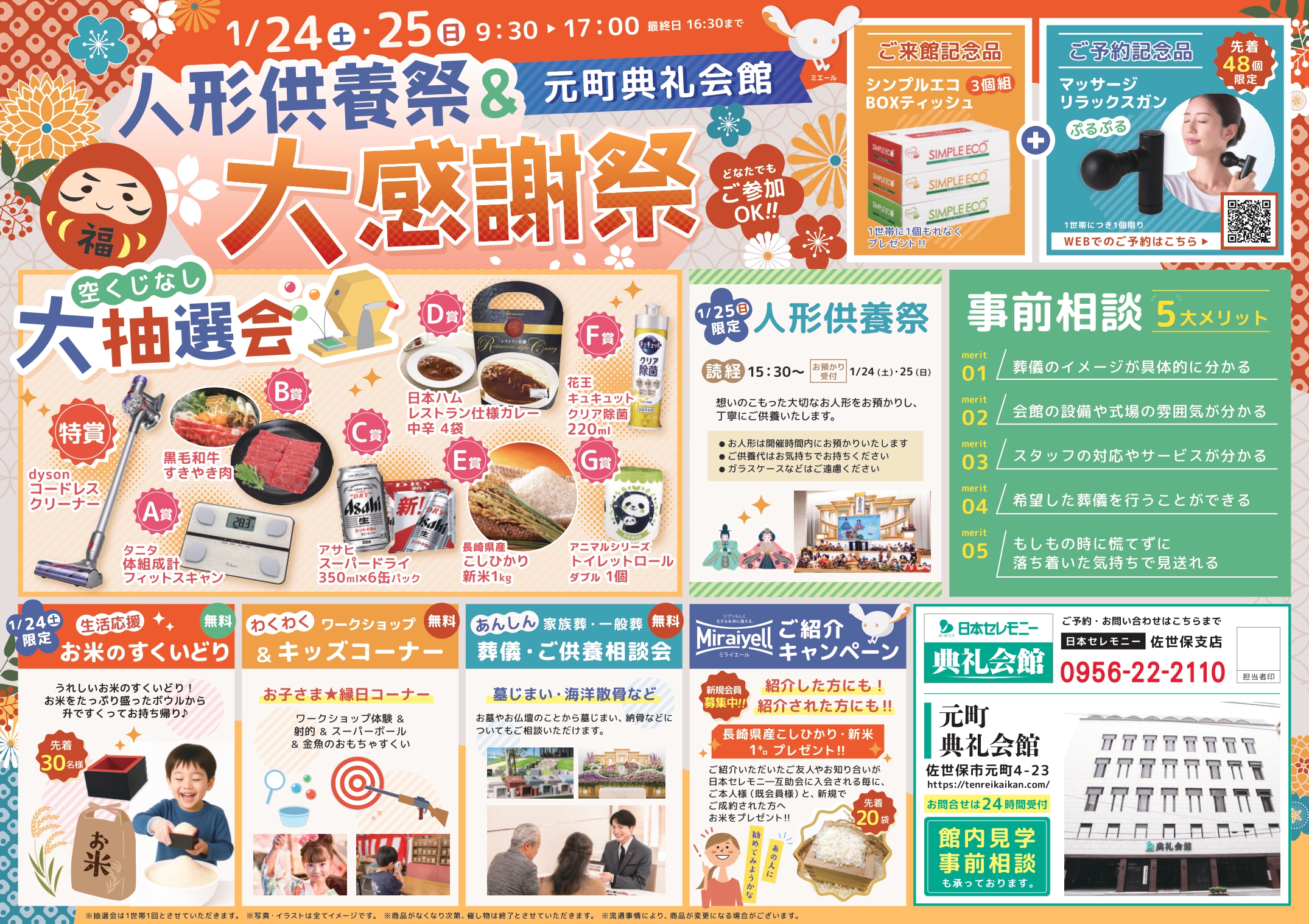 元町典礼会館(佐世保市元町4番23号 TEL0956-24-3232) にて『人形供養祭&大感謝祭』を開催いたします。